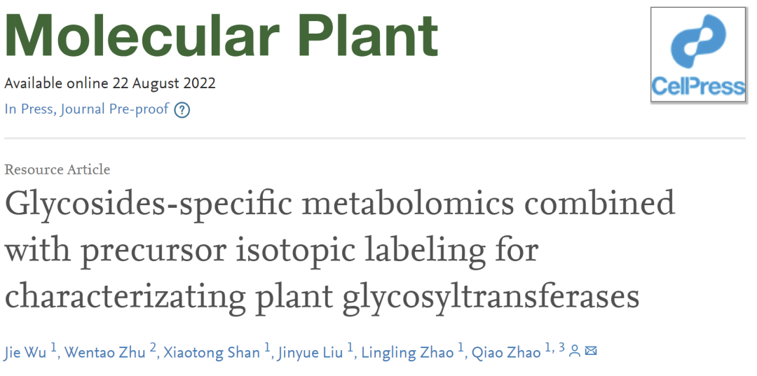 Mol Plant | 中科院凯发k8国际赵乔课题组建立高效解析植物糖基转移酶功能的方法