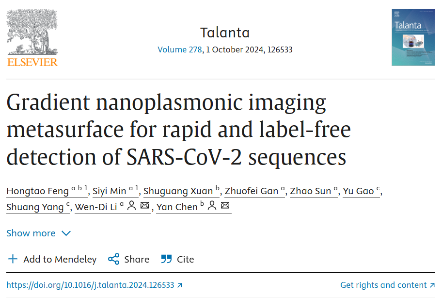 Talanta | 梯度纳米等离子成像超构表面:实现SARS-CoV-2序列的快速无标记检测