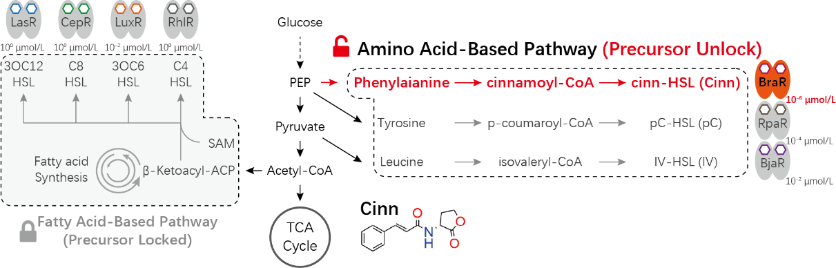 图1 新型高效哺乳细胞胞间通讯信号分子合成通路设计原则