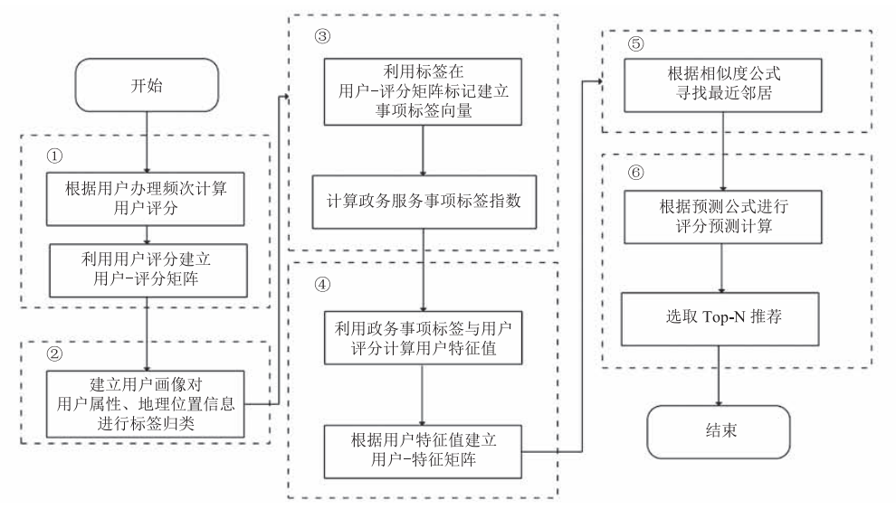 摘要:为推荐政务服务相关事项,提高用户办事效率与政府服务水平,该文提出一种推荐算法,即结合用户特征的政务服务协同过滤推荐方法。该方法为解决传统协同过滤未考虑用户属性的问题,将用户画像技术与其相结合。第一时间,建立政务服务用户画像;然后,采用奇异值度量分析方法融合用户画像与基于用户的协同过滤算法,使特征属性参与相似度计算,改善用户之间的相似性,并解决数据稀疏性的问题,使推荐结果更具实际意义;最后,计算政务服务事项预测得分,将得分最高的 TOP-N 推荐给用户。在实验部分,该文利用某市企业法人的政务服务真实数据进行验证。结果显示,该算法能够满足政务服务推荐的个性化要求,预测准确性较高。